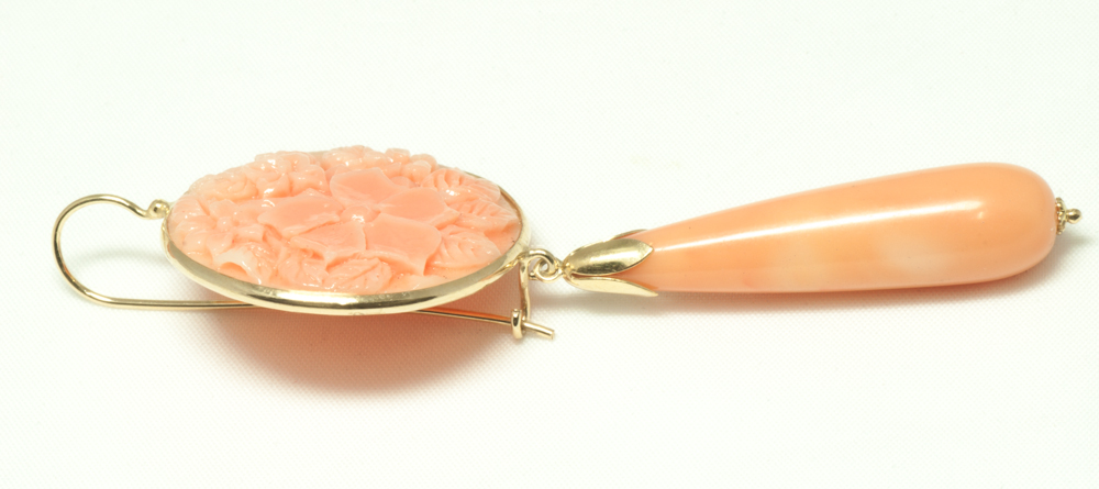 Pendientes realizados en plata con labrado en pasta de coral y lágrima.